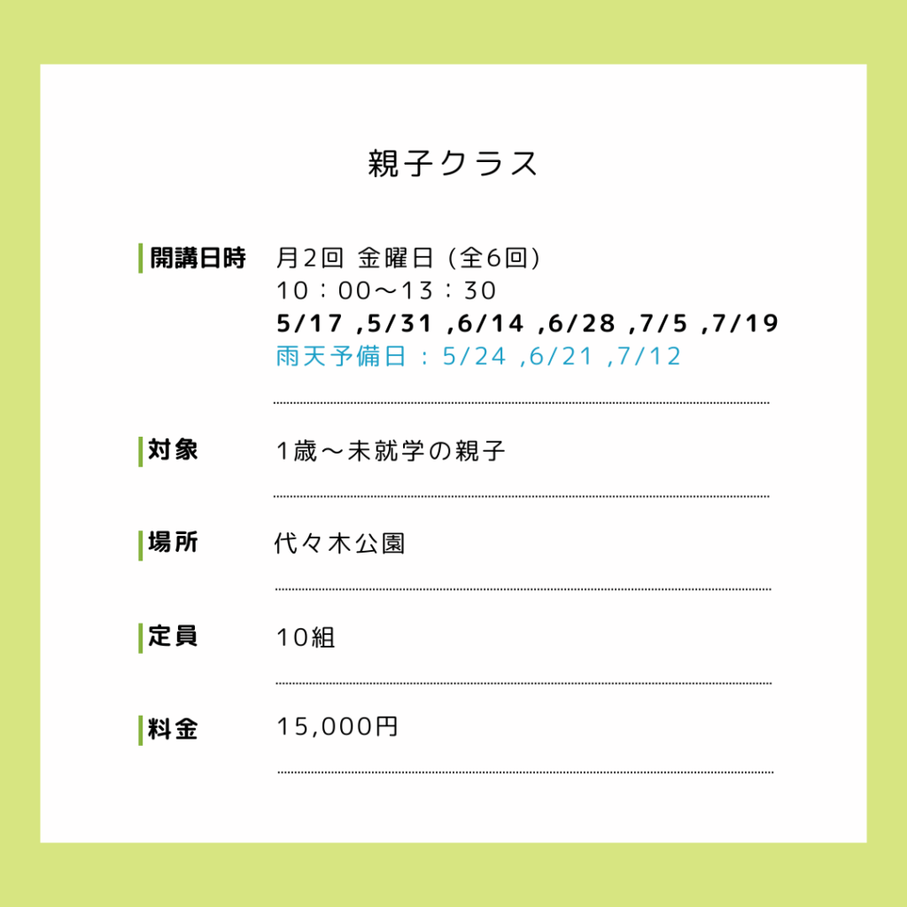 【全6回】 5月スタート親子クラス 概要